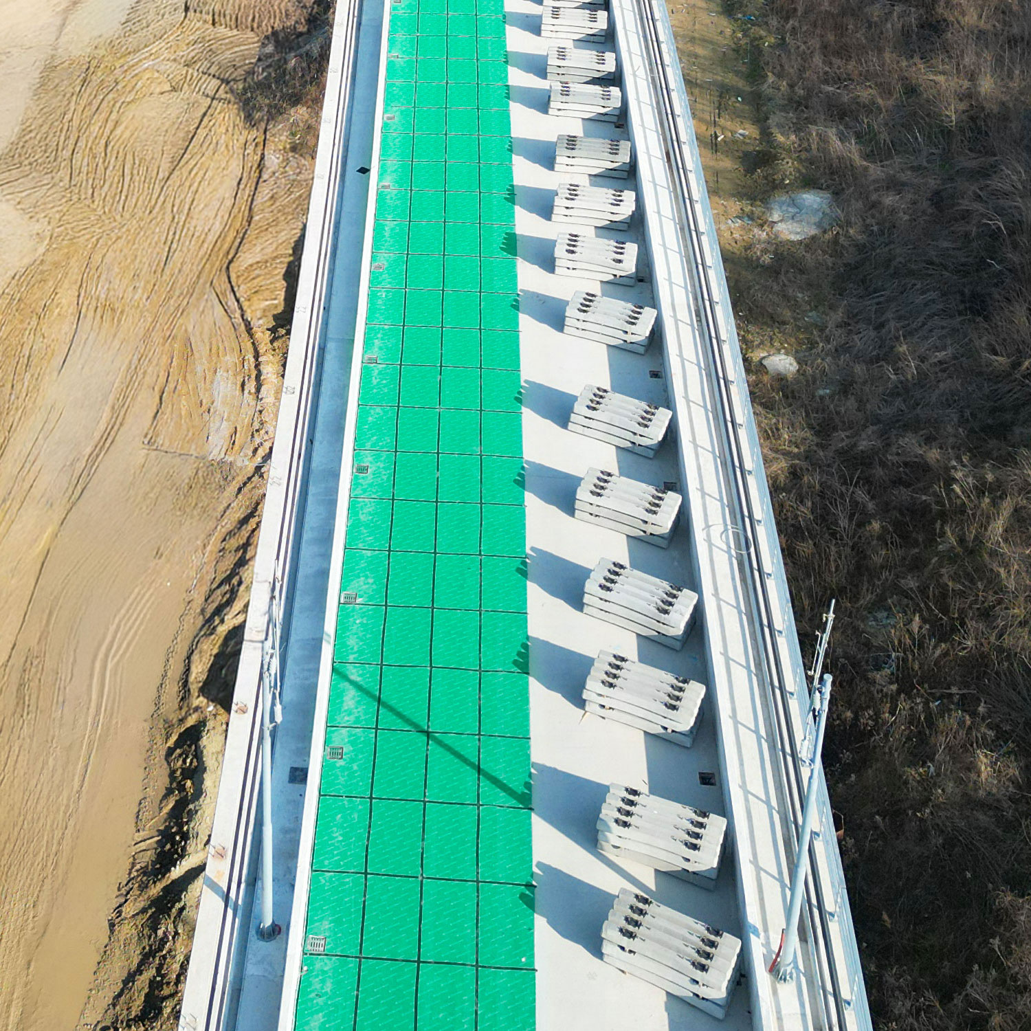 Materassini sotto soletta per armamento su platea (slab track): abbassano la rigidezza di contatto, filtrano le basse frequenze e limitano il rumore strutturale lungo tratte rigide.
