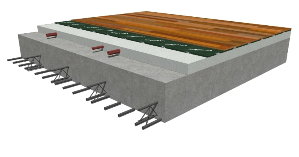 Vista la conformazione strutturale e tecnica dei vari piani il progettista doveva risolvere la questione acustica con un sistema sottopavimento che garantisse anche un comportamento meccanico secondo gli standard rigidi dell'hotel.
